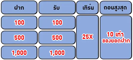 ทำเทิร์น 25 เท่า ถอนได้สูงสุด 10 เท่า ของยอดฝาก
